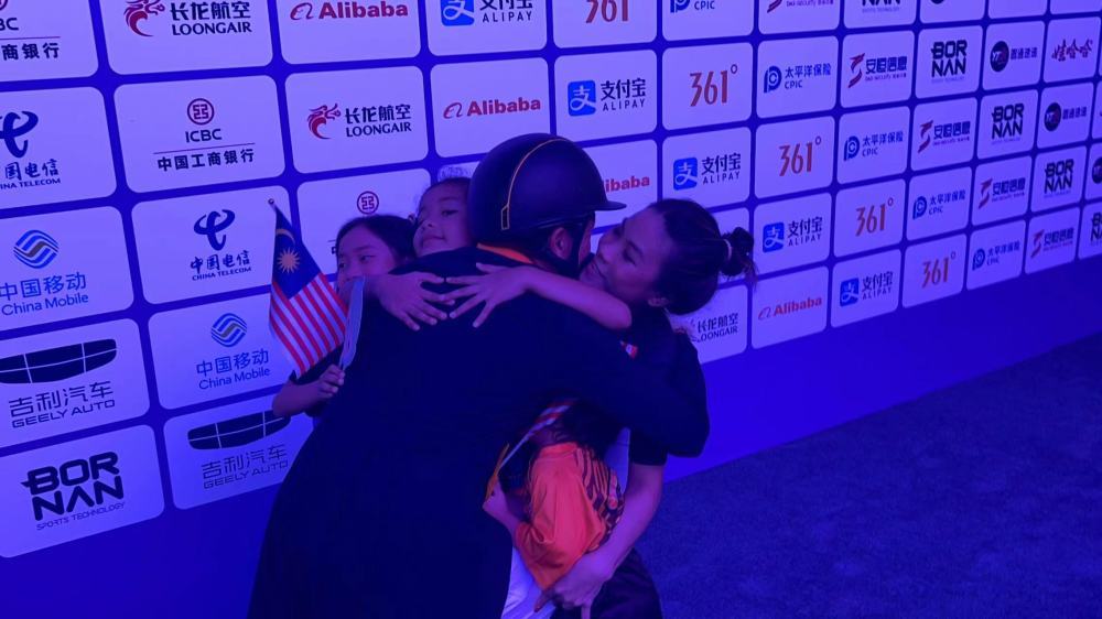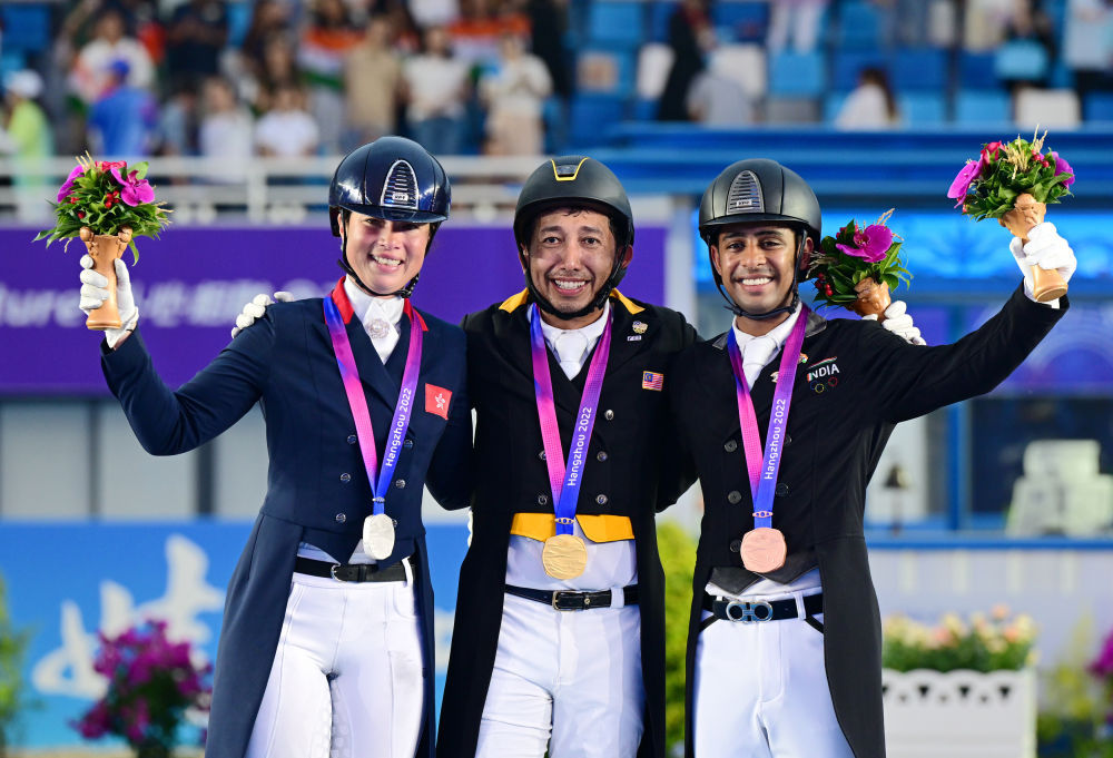 “今天對我來說太重要了,我的妻子、孩子在場邊目睹了這一刻,這是一場永遠值得回憶的比賽。我等這枚金牌已經(jīng)25年了,以前我只獲得過銅牌和銀牌?!卑舶涂瞬粌H實現(xiàn)了個人突破,也贏得了馬來西亞馬術項目的第一塊亞運金牌。
