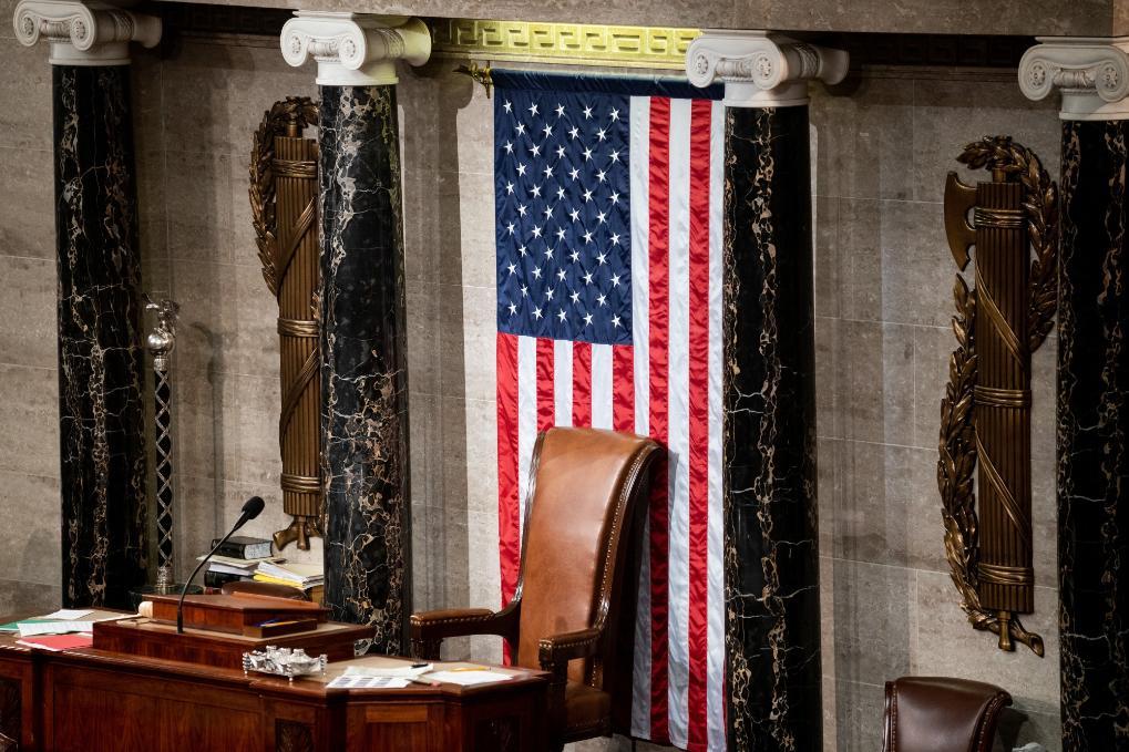 這是1月5日在美國華盛頓國會拍攝的空置的眾議院議長座椅。新華社記者劉杰攝
