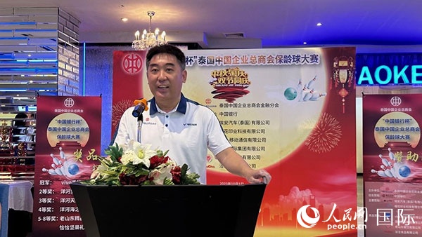 贊助商代表櫻花印業(yè)科技有限公司總經(jīng)理王奎表示,感謝總商會舉辦的保齡球大賽,讓旅居泰國的華人相聚在此開創(chuàng)不同的人生,就像保齡球一樣,瞄準(zhǔn)目標(biāo),勇往直前,永不退縮。