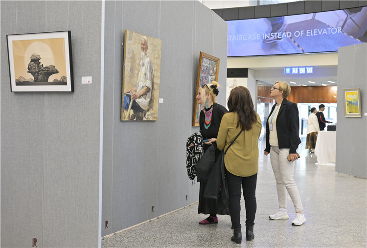 | 各國外交官在在欣賞中國藝術(shù)家作品。中國常駐維也納代表團(tuán)供圖 |