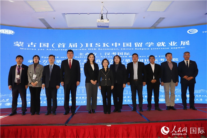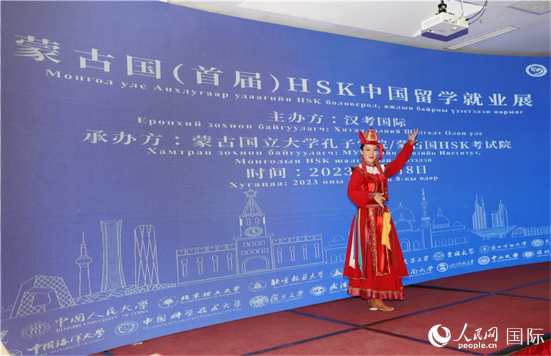 人民網(wǎng)烏蘭巴托10月8日電 (記者霍文)8日,由中國教育部中外語言交流合作中心、漢考國際主辦,蒙古國立大學(xué)孔子學(xué)院/蒙古國HSK考試院承辦的蒙古國首屆HSK中國留學(xué)就業(yè)展在烏蘭巴托成功舉辦。來自北京大學(xué)、清華大學(xué)、復(fù)旦大學(xué)、中國科學(xué)技術(shù)大學(xué)等21所中國“雙一流”高校和HSK MOCK,以及華為技術(shù)(蒙古)有限責(zé)任公司、東勝石油(蒙古)有限公司、中國能建-葛洲壩蒙古有限公司、順豐蒙古分公司等15家大型中資企業(yè)前來參展。