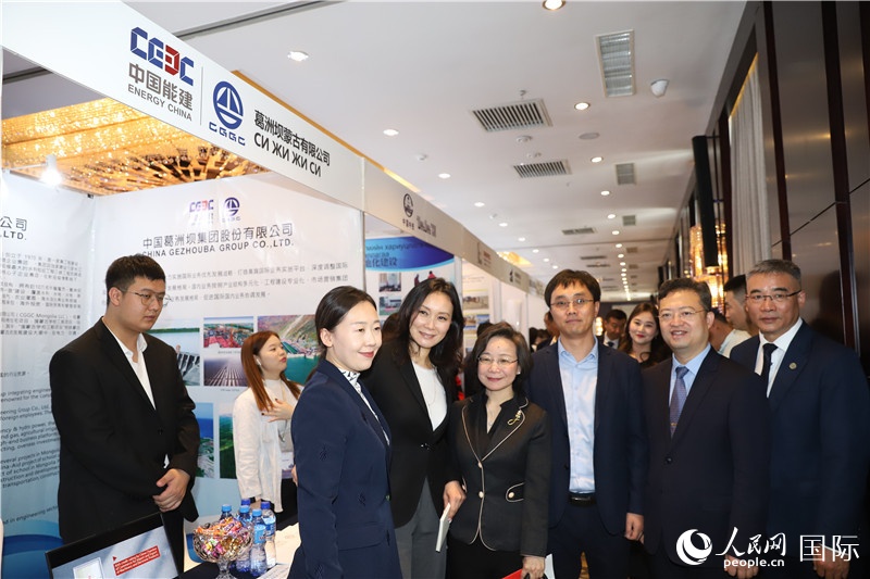 | 10月8日,沈敏娟(左三)大使在中企展位(左二為布拉根局長)。人民網(wǎng)記者 霍文攝 |