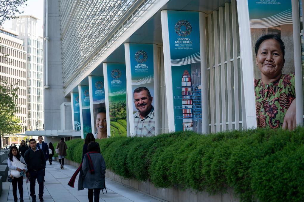 4月10日,在美國首都華盛頓,行人從世界銀行大樓前走過。新華社記者劉杰攝
