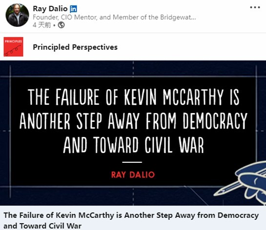 雷·達(dá)里奧(RayDalio)領(lǐng)英平臺截圖
