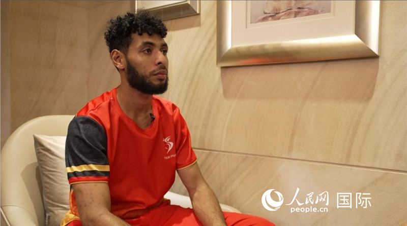 巴布亞新幾內(nèi)亞乒乓球國家隊(duì)隊(duì)員杰弗瑞·羅伊接受采訪。人民網(wǎng) 彭昱凱攝