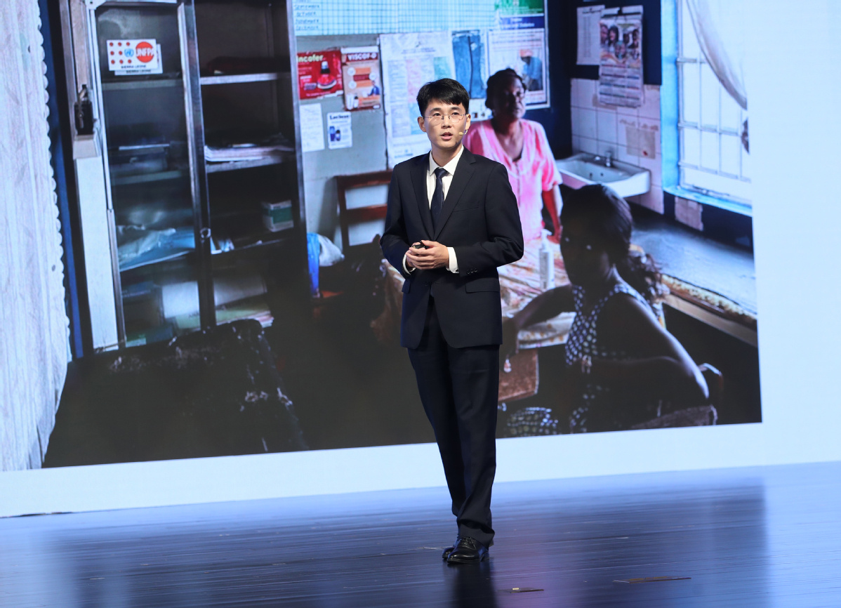 湖南省婦幼保健院援助非洲項目婦科醫(yī)生田畦發(fā)表演講。中國日報記者 鄒紅 攝