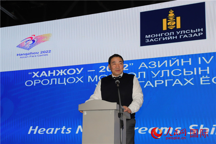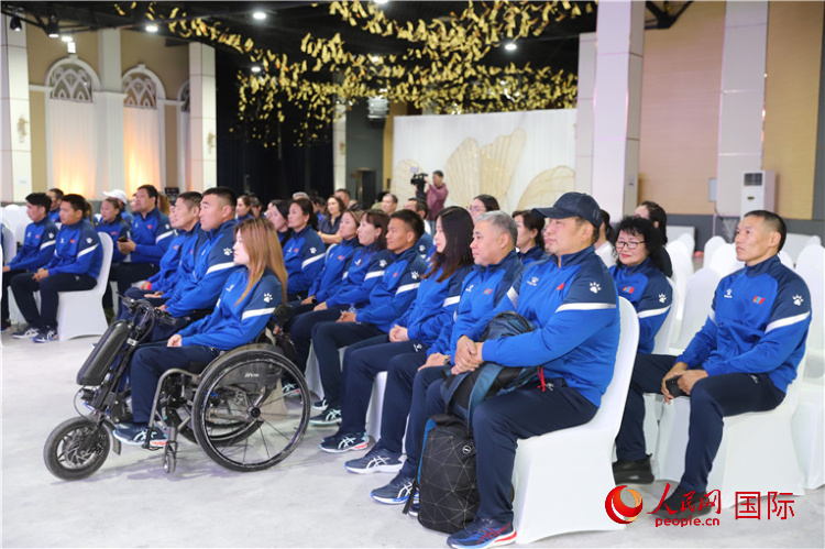 儀式上首先播放了杭州第4屆亞殘運會宣傳片,宣讀了亞殘奧委會主席馬吉德的賀辭。巴特額爾登在致辭中感謝蒙古國運動員和教練員的辛勤付出,預祝參賽運動員取得好成績。尼瑪呼在致辭中希望代表團成員團結一致,賽出風格,賽出水平,樹立蒙古國運動員的良好形象,同時力爭獲得更多獎牌,為國增光。