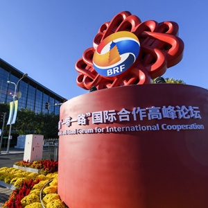 10月14日在北京國家會議中心附近拍攝的第三屆“一帶一路”國際合作高峰論壇景觀布置。新華社記者 鞠煥宗 攝