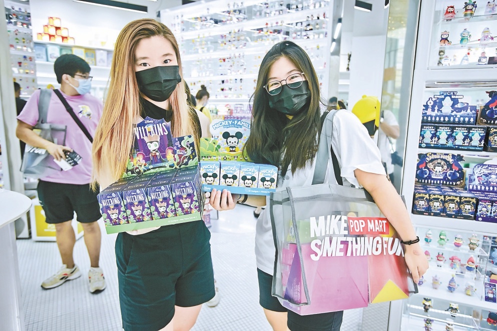 消費(fèi)者在泡泡瑪特新加坡門店內(nèi)選購(gòu)商品。