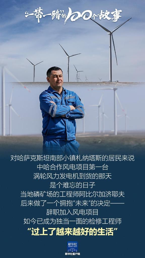 對哈薩克斯坦南部小鎮(zhèn)札納塔斯的居民來說,中哈合作風(fēng)電項(xiàng)目第一臺渦輪風(fēng)力發(fā)電機(jī)到貨的那天,是個難忘的日子。當(dāng)?shù)亓椎V場的工程師阿比爾加濟(jì)耶夫,后來做了一個擁抱“未來”的決定——辭職加入風(fēng)電項(xiàng)目,如今已成為獨(dú)當(dāng)一面的檢修工程師,“過上了越來越好的生活”。(記者:張繼業(yè))