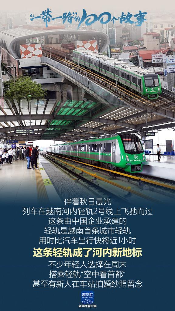 伴著秋日晨光,列車(chē)在越南河內(nèi)輕軌2號(hào)線上飛馳而過(guò)。這條由中國(guó)企業(yè)承建的輕軌是越南首條城市輕軌,用時(shí)比汽車(chē)出行快將近1小時(shí)。這條輕軌成了河內(nèi)新地標(biāo),不少年輕人選擇在周末搭乘輕軌“空中看首都”,甚至有新人在車(chē)站拍婚紗照留念。