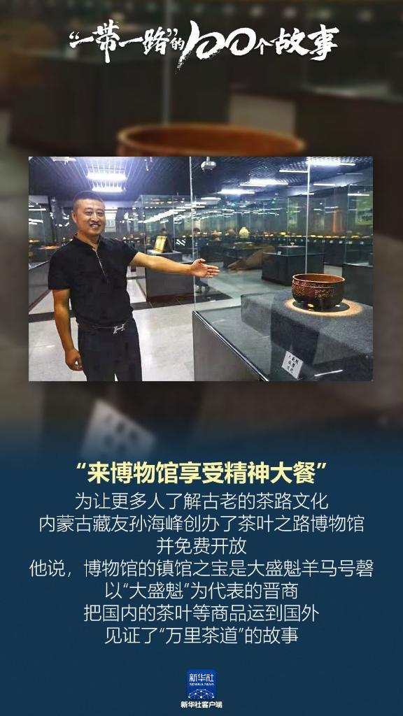 “來博物館享受精神大餐?!睘樽尭嗳肆私夤爬系牟杪肺幕?,內(nèi)蒙古藏友孫海峰創(chuàng)辦了茶葉之路博物館,并免費(fèi)開放。他說,博物館的鎮(zhèn)館之寶是大盛魁羊馬號(hào)磬,以“大盛魁”為代表的晉商,把國內(nèi)的茶葉等商品運(yùn)到國外,見證了“萬里茶道”的故事。(記者:趙澤輝)