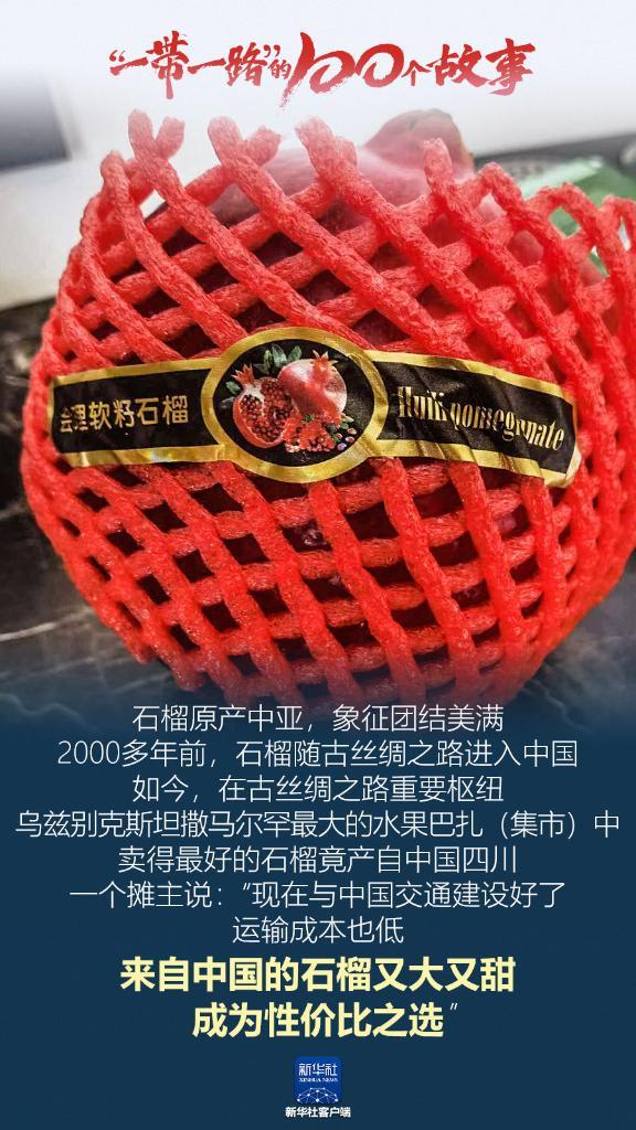 石榴原產(chǎn)中亞,象征團(tuán)結(jié)美滿。2000多年前,石榴隨古絲綢之路進(jìn)入中國。如今,在古絲綢之路重要樞紐烏茲別克斯坦撒馬爾罕最大的水果巴扎(集市)中,賣得最好的石榴竟產(chǎn)自中國四川。一個(gè)攤主說:“現(xiàn)在與中國交通建設(shè)好了,運(yùn)輸成本也低,來自中國的石榴又大又甜,成為性價(jià)比之選?!保ㄓ浾撸喉趵桕兀?/p>