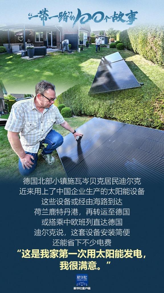 德國北部小鎮(zhèn)施瓦岑貝克居民迪爾克,近來用上了中國企業(yè)生產(chǎn)的太陽能設(shè)備。這些設(shè)備或經(jīng)由海路到達(dá)荷蘭鹿特丹港,再轉(zhuǎn)運(yùn)至德國,或搭乘中歐班列直達(dá)德國。迪爾克說,這套設(shè)備安裝簡便,還能省下不少電費(fèi),“這是我家第一次用太陽能發(fā)電,我很滿意”。(記者:任鵬飛)