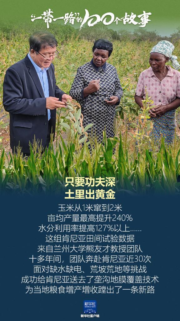 只要功夫深,土里出黃金。玉米從1米竄到2米,畝均產(chǎn)量最高提升240%,水分利用率提高127%以上……這組肯尼亞田間試驗數(shù)據(jù),來自蘭州大學(xué)熊友才教授團隊。十多年間,團隊奔赴肯尼亞近30次,面對缺水缺電、荒坡荒地等挑戰(zhàn),成功給肯尼亞送去了壟溝地膜覆蓋技術(shù),為當(dāng)?shù)丶Z食增產(chǎn)增收蹚出了一條新路。(記者:張文靜、郭剛)
