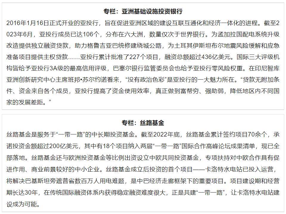 共建“一帶一路”積極開拓多元化、多層次融資渠道,為新興經(jīng)濟(jì)體和發(fā)展中國家經(jīng)濟(jì)增長“輸血”。亞洲基礎(chǔ)設(shè)施投資銀行(亞投行)、絲路基金、中國開發(fā)性和政策性銀行及商業(yè)金融機(jī)構(gòu),與世界銀行、歐洲復(fù)興開發(fā)銀行、亞洲開發(fā)銀行等多邊開發(fā)機(jī)構(gòu)以及國際和本地金融機(jī)構(gòu)積極合作,形成透明、高效、互利的共建“一帶一路”投融資朋友圈。