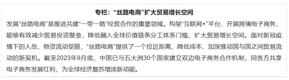 締結(jié)貿(mào)易協(xié)定和擴(kuò)大市場準(zhǔn)入能夠有效提振貿(mào)易。共建“一帶一路”通過創(chuàng)新貿(mào)易方式、搭建貿(mào)易平臺,打通貿(mào)易堵點,激活共建國家貿(mào)易潛能,為全球貿(mào)易大環(huán)流注入新動力。這些努力包括:打造以中國國際進(jìn)口博覽會為引領(lǐng)的矩陣式商品展會,同世界共享中國市場機(jī)遇;簽署或升級自由貿(mào)易協(xié)定,共同建設(shè)自由貿(mào)易區(qū)網(wǎng)絡(luò);推動跨境電商發(fā)展,為拓展貿(mào)易增長空間提供新可能;深化海關(guān)貿(mào)易安全和通關(guān)便利化合作,提升貿(mào)易便利化水平。[13]