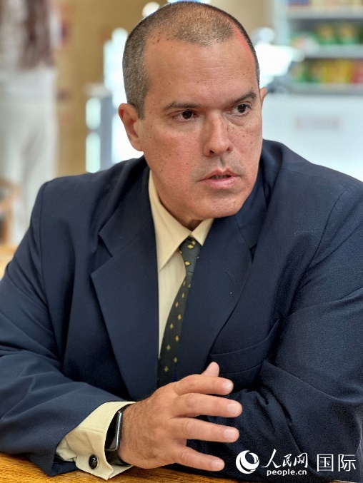 | 古巴拉丁美洲通訊社社長路易斯·恩里克·岡薩雷斯·阿科斯塔接受人民網(wǎng)記者采訪。人民網(wǎng) 亞瑟夫攝 |