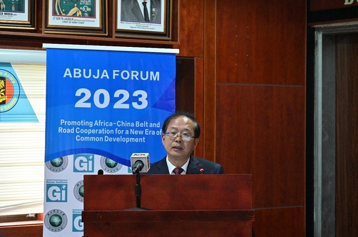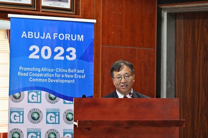 中國(guó)駐尼日利亞大使崔建春致辭。浙江師范大學(xué)非洲研究院供圖