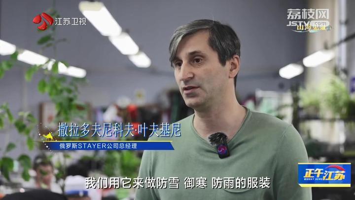 俄羅斯STAYER公司總經(jīng)理撒拉多夫尼科夫·葉夫基尼說:“這都是剛從中國(guó)運(yùn)過來的布料,它們具有防水性,透氣性,我們用它來做防雪、御寒、防雨的服裝。所有人都贊成中國(guó)的布料越來越好,近三年的計(jì)劃是加強(qiáng)與合作伙伴的聯(lián)系,擴(kuò)大布料的購(gòu)買量,期待有好的發(fā)展?!?/p>