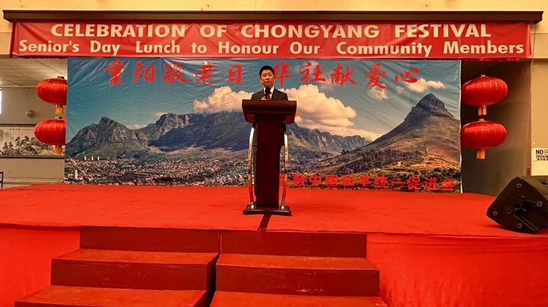 湯長安在活動上發(fā)表致辭說,此次舉辦的慶祝重陽節(jié)活動,不僅傳承和弘揚了尊老敬老的傳統(tǒng)中華美德,同時展現(xiàn)了開普敦僑界團結(jié)和諧包容的良好局面,更為中南民間交流提供了重要平臺。