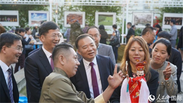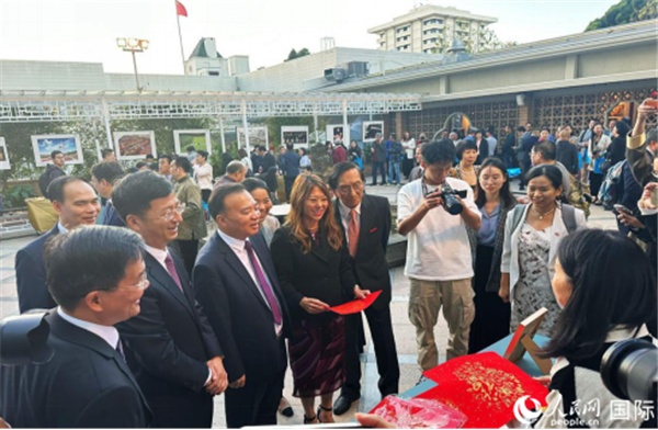 | 嘉賓欣賞福建剪紙藝術(shù)。人民網(wǎng)記者 鄧圩攝 |