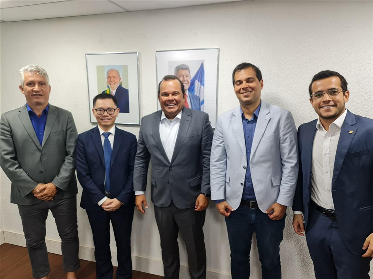 巴伊亞州副州長(zhǎng)杰拉爾多·儒尼奧爾(中)與中國(guó)—巴伊亞州礦業(yè)委員會(huì)主要成員合影。巴西巴伊亞州“中國(guó)—巴伊亞州礦業(yè)委員會(huì)”供圖