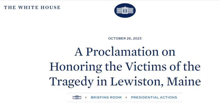 中新網(wǎng)10月27日電 據(jù)美國白宮網(wǎng)站消息,當?shù)貢r間26日,美國總統(tǒng)拜登發(fā)表聲明,下令白宮等地降半旗,向緬因州劉易斯頓大規(guī)模槍擊案中的遇害者致哀。