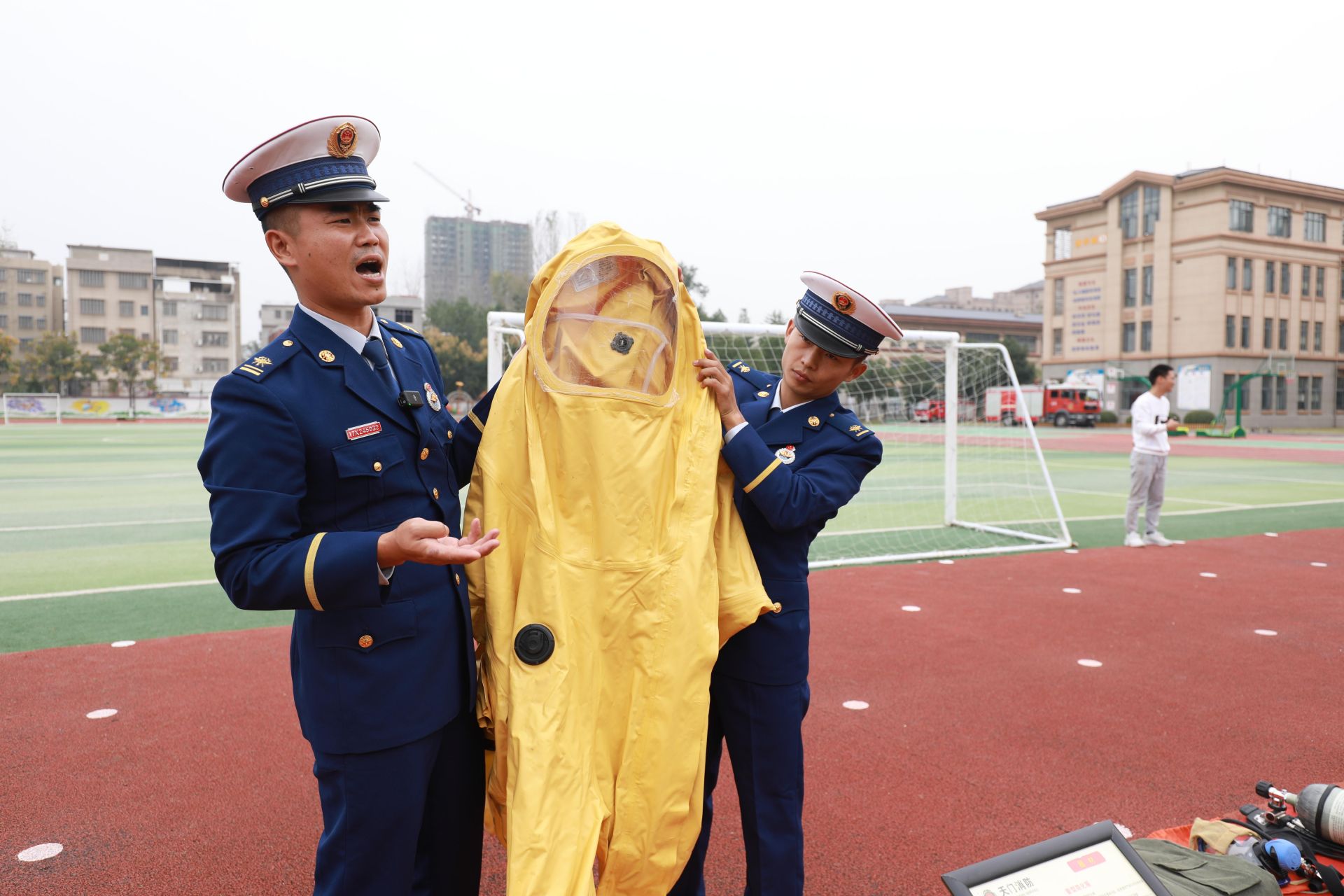 消防員展示防護服