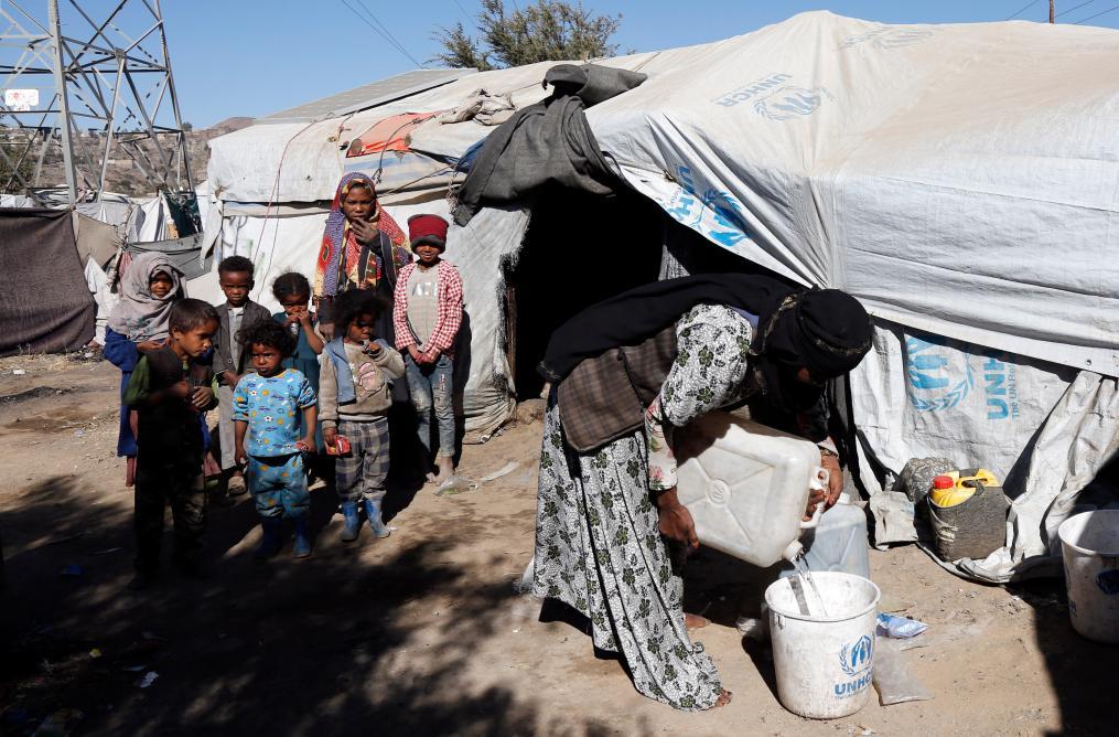 這是2022年12月7日在也門薩那北部郊區(qū)一個(gè)難民營拍攝的孩子。新華社發(fā)(穆罕默德·穆罕默德攝)