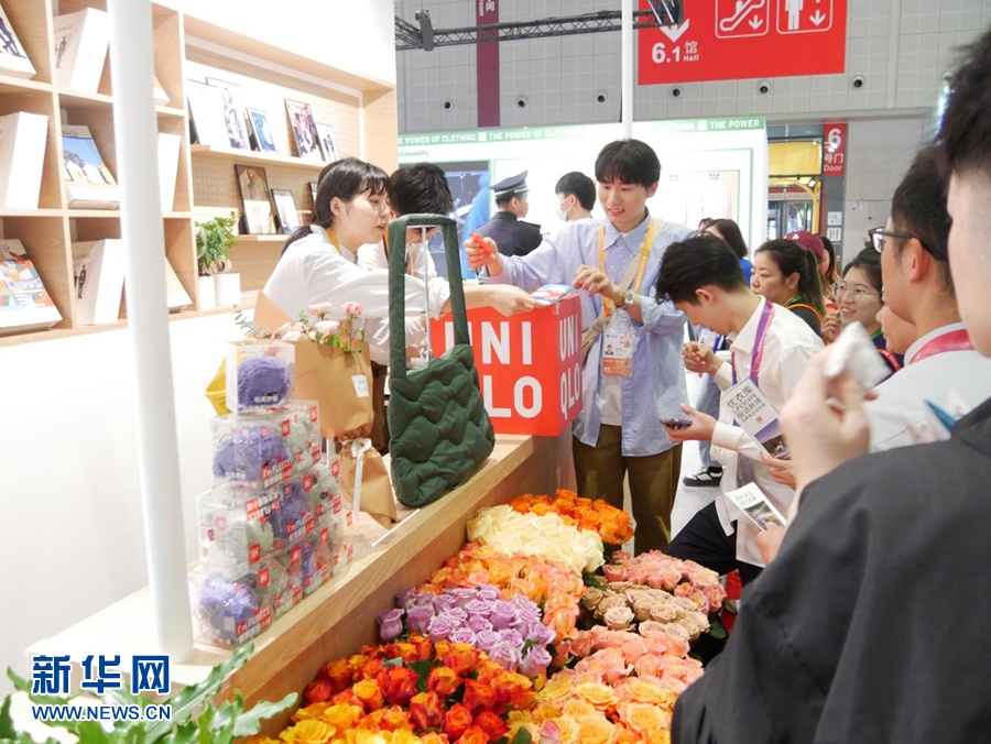 圖為5日拍攝的第六屆進(jìn)博會上的優(yōu)衣庫展臺。(新華社記者彭純攝)