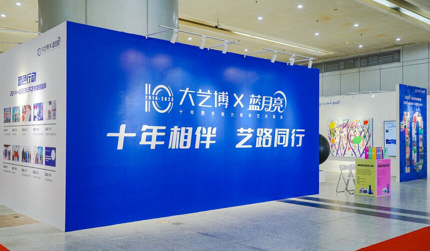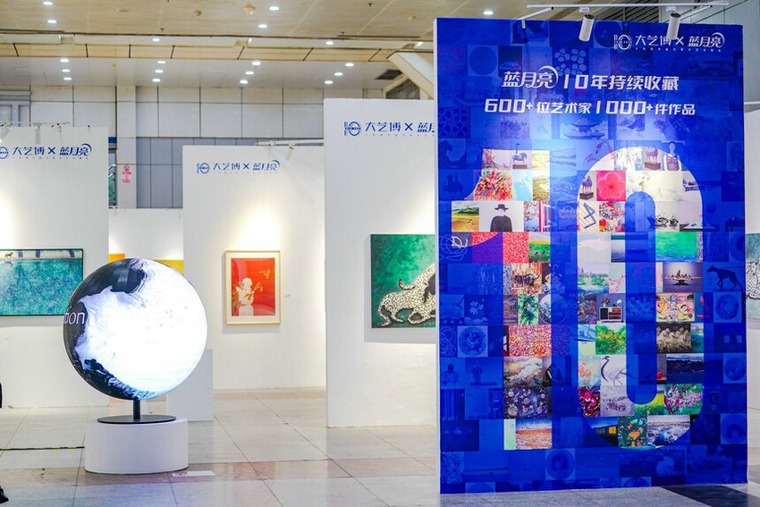 本屆大藝博也特別設(shè)立“十年相伴 藝路同行”特別專區(qū),回顧藍月亮十年的藝術(shù)公益之路,分享藍月亮十年收藏的藝術(shù)佳作。希望大家在觀賞展品時,能感受到當(dāng)代青年藝術(shù)家們的持續(xù)創(chuàng)新姿態(tài),與非凡藝術(shù)魅力。此外,本屆大藝博公共藝術(shù)項目「藍色行動:來自月亮的禮物」,通過主題繪畫作品征集與評選、藝術(shù)家AI共創(chuàng),與作品現(xiàn)場展示,鼓勵更多新生代,以共創(chuàng)的形式參與公共藝術(shù)項目,傳遞藝術(shù)之美,傳達藝術(shù)能量。
