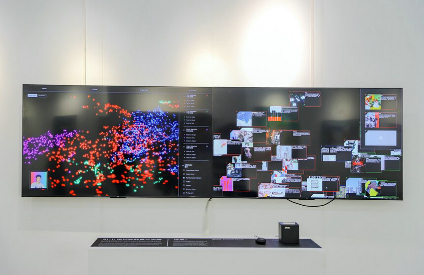 在藝術(shù)與科技深度融合的浪潮下,今年交互裝置、多媒體影像類參展作品的表現(xiàn)令人欣喜。藝術(shù)家們運用多媒體、AI編程、動態(tài)捕捉技術(shù)、AI繪畫等技術(shù)手段進行創(chuàng)作的探索實踐,從觀念到實現(xiàn)方式讓人耳目一新,互動性也更強。