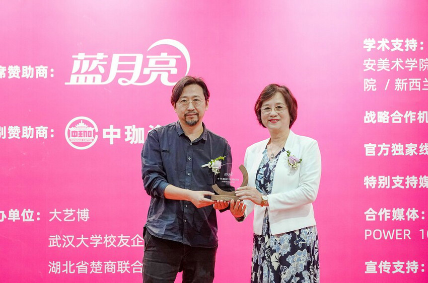 在開幕式現(xiàn)場,大藝博組委會特邀湖北美術(shù)學(xué)院副院長張煉作為頒獎嘉賓,向藍月亮頒發(fā)“十年相伴·藝路同行”特別榮譽紀念獎,以記錄與表彰藍月亮持續(xù)十年支持青年藝術(shù)的公益成就。