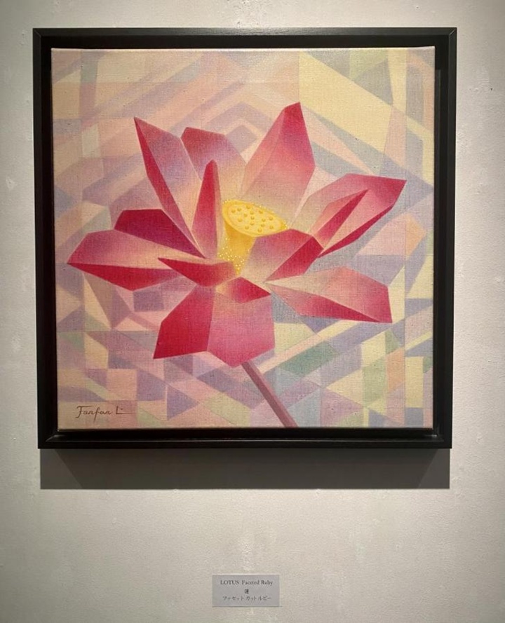 在此次畫(huà)展上,李芳芳共展出12副作品。其中以蓮花和蜻蜓等自然元素為主題的畫(huà)作6幅,以星座、宇宙為主題的畫(huà)作6幅。古井畫(huà)廊負(fù)責(zé)人古井篤志表示:“李芳芳的作品以自然和宇宙為核心,表現(xiàn)手法上將東西方美學(xué)融合在一起,在纖細(xì)中體現(xiàn)美,這種風(fēng)格在日本非常受歡迎?!?/p>