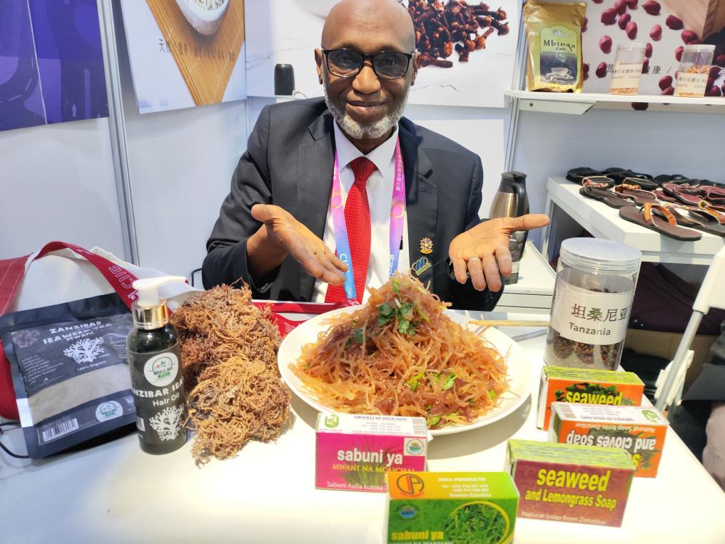 “來(lái)到進(jìn)博會(huì),才知道我們的海藻產(chǎn)品有個(gè)好聽(tīng)的中國(guó)名字——麒麟菜,我們當(dāng)?shù)亟兴麺wani?!边M(jìn)博會(huì)上,來(lái)自坦桑尼亞的參展商納蘇爾·達(dá)基向記者介紹起來(lái):麒麟菜是產(chǎn)自坦桑尼亞桑給巴爾島的特色海藻,既可以直接作為涼菜,也可以用作工業(yè)原料,被當(dāng)?shù)刈u(yù)為“綠色黃金”。