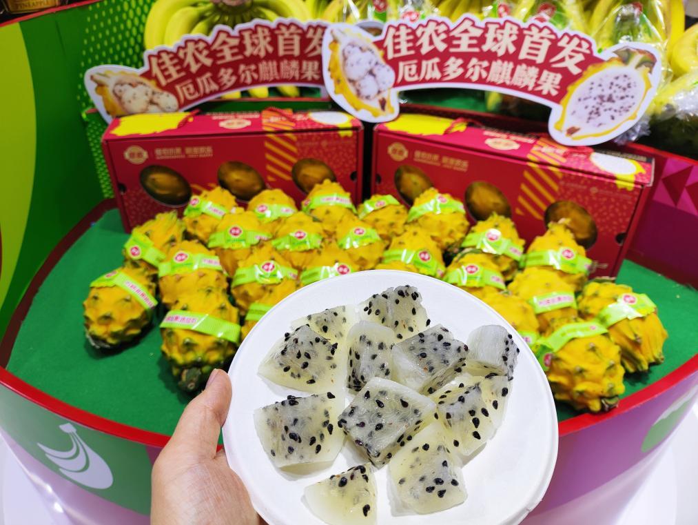 11月7日,第六屆進(jìn)博會(huì)佳農(nóng)展臺(tái)上的麒麟果。新華社記者楊洋 攝