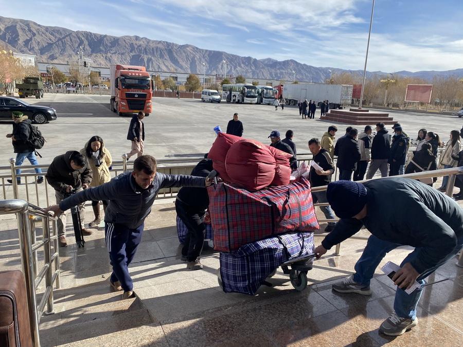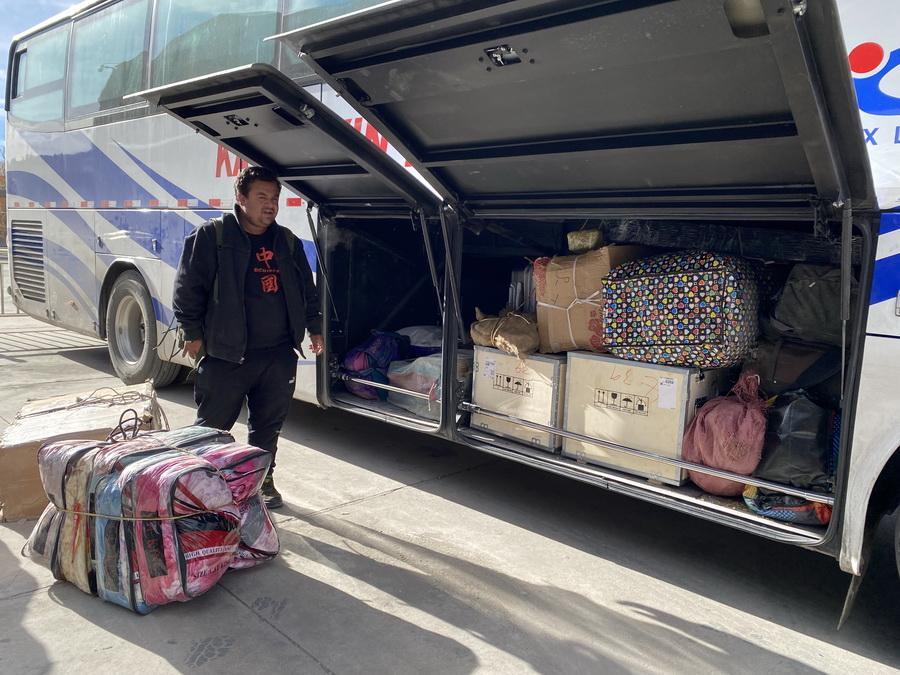 11月6日,國際道路旅客(旅游)班車裝滿了旅客的行李。(中國網(wǎng)記者 王冉 攝)