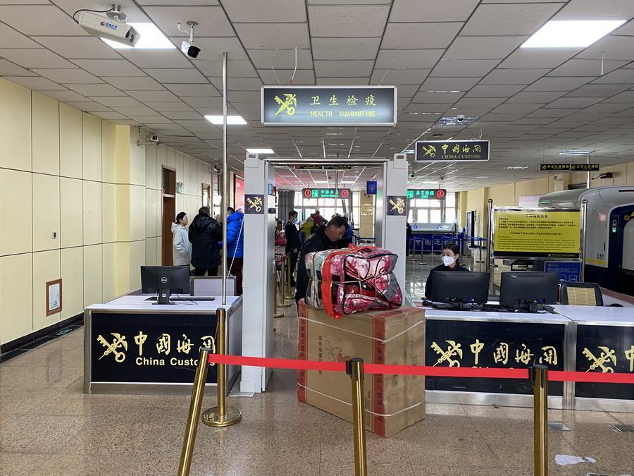11月6日,紅其拉甫邊檢站民警為出境旅客辦理邊檢手續(xù)。(中國網(wǎng)記者 王冉 攝)