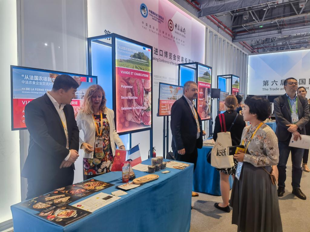 “從法國農(nóng)場到中國餐桌”——第六屆進博會開幕第二天,食品及農(nóng)產(chǎn)品展區(qū)的一個角落,40多家法國農(nóng)食企業(yè)集體亮相,與國內(nèi)采購商面對面交流對接。