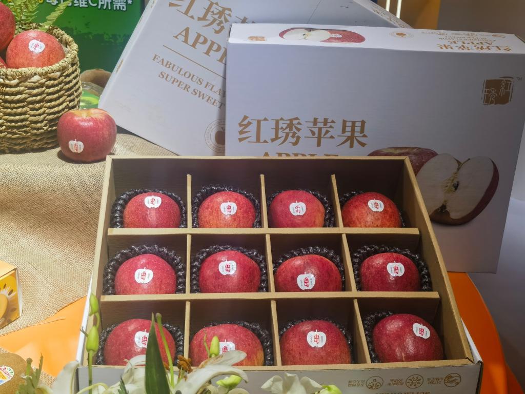 第六屆進博會上,鑫榮懋推出一款在國內(nèi)種植、源自新西蘭的新品種“紅琇蘋果”。 新華社記者韓潔 攝