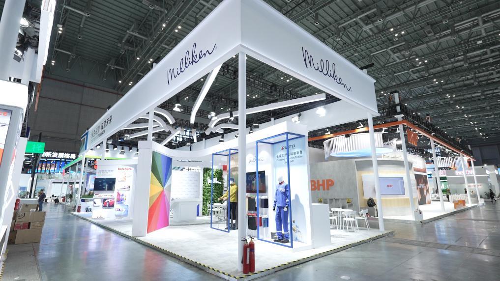 美國材料制造企業(yè)美利肯公司今年首次參加進博會,帶來精細化工、紡織、地材三大主要業(yè)務(wù)板塊產(chǎn)品。新華社記者韓潔 攝