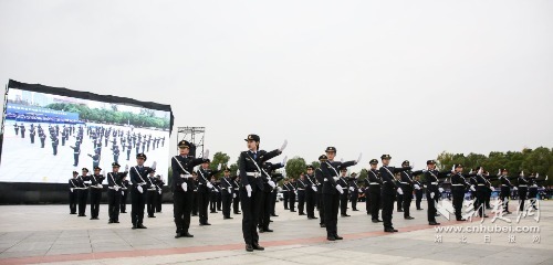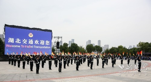 在執(zhí)法方陣展示項(xiàng)目中,22個(gè)執(zhí)法支隊(duì)組成的隊(duì)列、交通指揮手勢和旗語3個(gè)執(zhí)法方陣分別進(jìn)行了展示。隊(duì)列方陣英姿颯爽步伐一致,展示出了執(zhí)法隊(duì)伍的團(tuán)隊(duì)精神和組織紀(jì)律;交通指揮手勢方陣整齊劃一、動(dòng)作精準(zhǔn),展示出了執(zhí)法隊(duì)伍的專業(yè)素養(yǎng)和過硬本領(lǐng)。旗語方陣則展現(xiàn)了水上交通執(zhí)法通過旗幟進(jìn)行信息傳遞的通信手段,在演示完基礎(chǔ)旗語動(dòng)作后,通過旗語打出了Welcome To HuBei Transportation的短語縮寫,意思是“湖北交通歡迎您”。