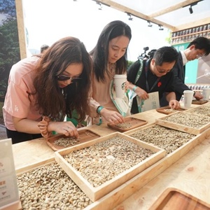 9月19日,在星巴克中國咖啡創(chuàng)新產(chǎn)業(yè)園開園儀式現(xiàn)場,來賓在體驗(yàn)挑揀咖啡生豆。當(dāng)日,星巴克中國咖啡創(chuàng)新產(chǎn)業(yè)園在江蘇昆山落成投產(chǎn)。