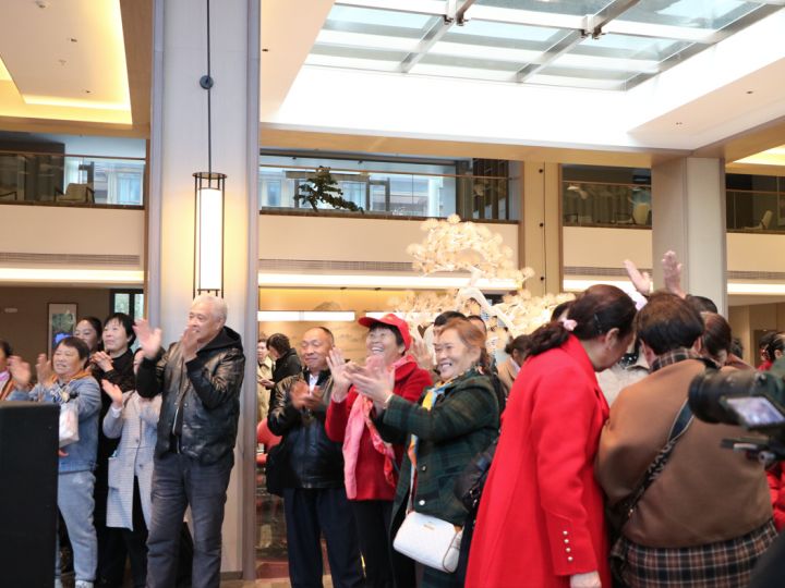 新界國(guó)際大酒店大廳內(nèi),長(zhǎng)達(dá)百米的長(zhǎng)桌宴火熱開(kāi)啟,一道道土家特色美食擺上款貴客,熱情的土家敬酒歌表演,給游客們帶來(lái)了味覺(jué)和視覺(jué)的雙重享受,場(chǎng)面蔚為壯觀。