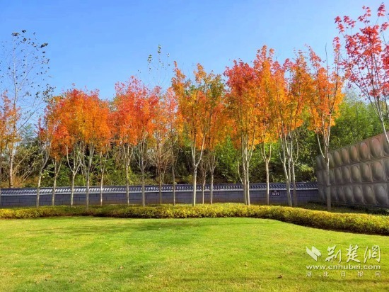 距離安陸服務(wù)區(qū)100公里的封江服務(wù)區(qū),成片的紅色銀杏如詩如畫。但這里的“紅妝”卻不僅限于此。