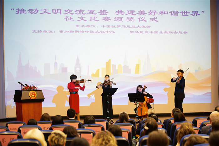 | 香港弦樂團音樂家在頒獎儀式上的精彩演出。布加勒斯特中國文化中心供圖 |