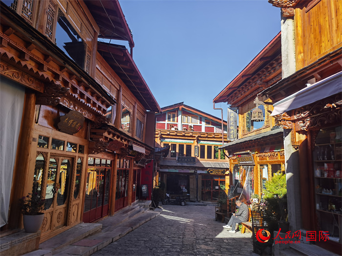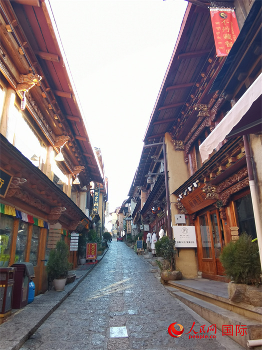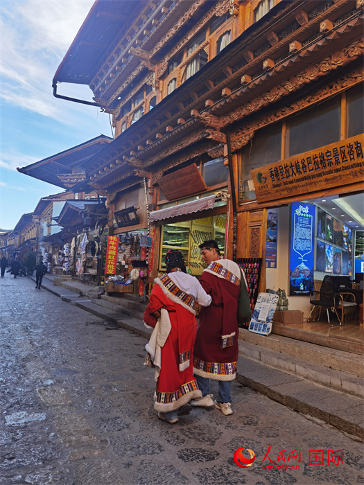 | 身著民族服飾的游客走在獨(dú)克宗古城街巷中。人民網(wǎng)記者 杜明明攝 |