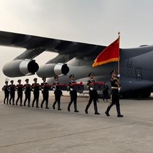 第十批在韓中國(guó)人民志愿軍烈士遺骸交接儀式23日上午在韓國(guó)仁川國(guó)際機(jī)場(chǎng)舉行,韓方向中方移交25位烈士遺骸及相關(guān)遺物。(記者:陸睿 陳怡) ???