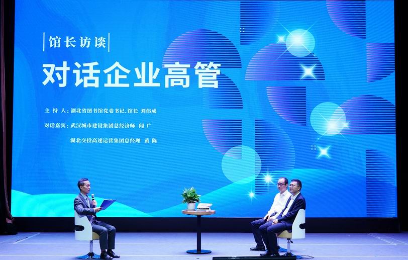 為了進(jìn)一步提升湖北省公共數(shù)字文化服務(wù)的主動性,湖北省圖書館在本次活動中不僅為企業(yè)引進(jìn)系統(tǒng)培訓(xùn)課程,還積極走進(jìn)企業(yè),導(dǎo)入海量數(shù)字資源,提供知識產(chǎn)權(quán)咨詢、專利查詢、黨建學(xué)習(xí)、專題講座等智庫支撐,通過提升企業(yè)職工的思辨技巧與信息素養(yǎng)能力,助力企業(yè)數(shù)字化轉(zhuǎn)型升級。在活動現(xiàn)場,還新增了“館長訪談——對話企業(yè)高管”環(huán)節(jié),湖北省圖書館館長劉偉成與武漢城建集團(tuán)總經(jīng)濟(jì)師聞廣、湖北交投高速運(yùn)營集團(tuán)總經(jīng)理黃陳圍繞數(shù)智時代經(jīng)濟(jì)高質(zhì)量發(fā)展進(jìn)行了深入探討,共同為企業(yè)數(shù)字化轉(zhuǎn)型建言獻(xiàn)策。